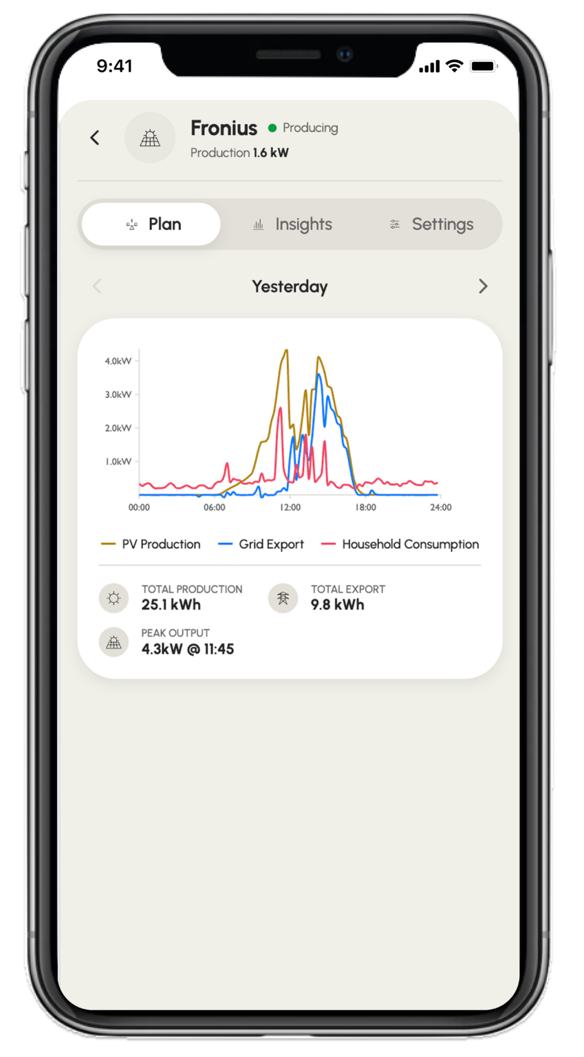 A per-device metric showing how much of each device’s potential you’re actually unlocking. The app surfaces targeted recommendations alongside the score, for example, nudging an EV owner to plug in more overnight to access lower prices.
